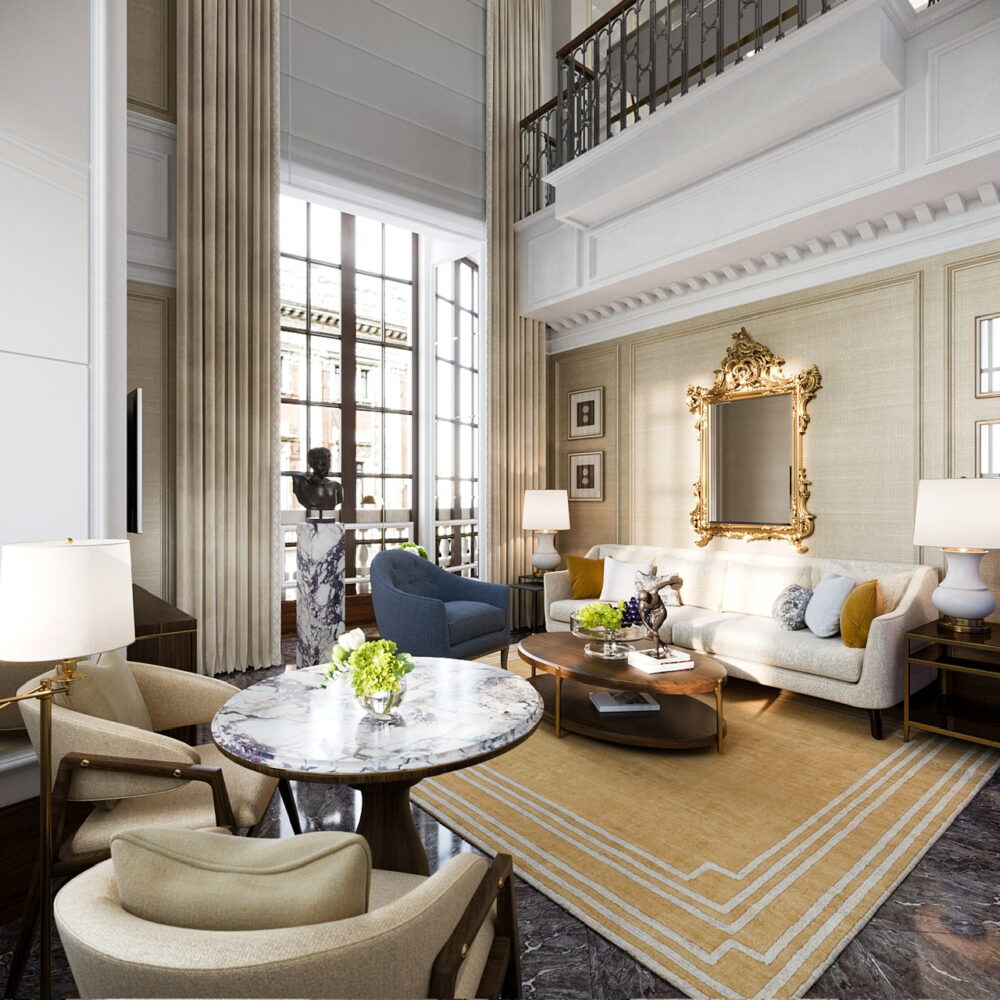 Το κτίριο, έργο του αρχιτέκτονα Marcello Piacentini και κατασκευασμένο το 1914, λειτούργησε ως σημαντικό χρηματοπιστωτικό ίδρυμα για μεγάλο μέρος του 20ού αιώνα. Αποκτήθηκε από τους Reuben Brothers το 2019 και τώρα μεταμορφώνεται σε πολυτελές ξενοδοχείο έπειτα από πολυετή αποκατάσταση 9.700 τ.μ. σε επτά ορόφους. Αυθεντικά στοιχεία όπως μαρμάρινες επενδύσεις, τοιχογραφίες και ξυλόγλυπτα διατηρήθηκαν με προσοχή, ενώ τα νέα interiors από το G.A. Design προσθέτουν σύγχρονες, εκλεπτυσμένες λεπτομέρειες. Το αποτέλεσμα είναι ένα οικείο ξενοδοχείο 60 δωματίων που ισορροπεί αρμονικά ανάμεσα στην ιστορία και τη σύγχρονη δεξιοτεχνία.