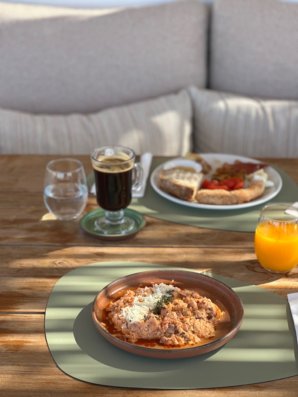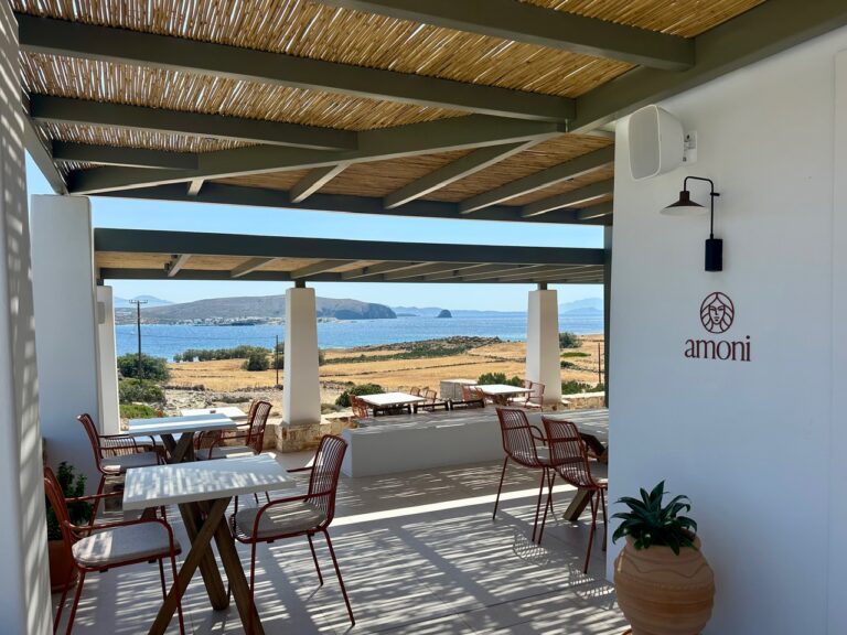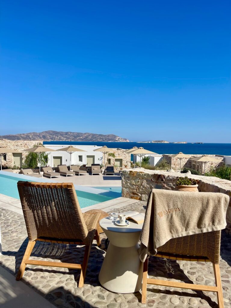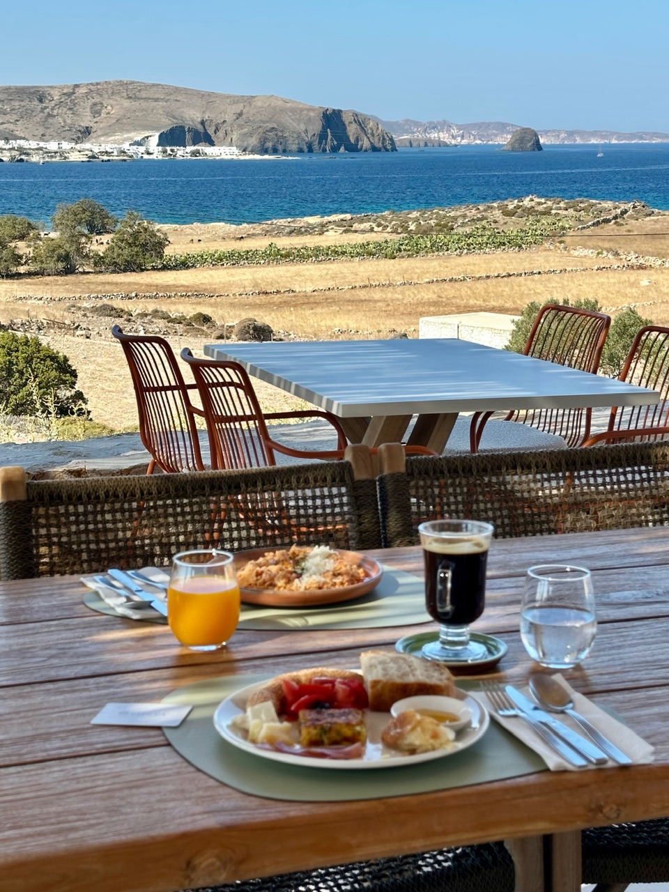 Στον πυρήνα του Espera, η πισίνα απλωνόταν σαν όαση, με το νερό να γαληνεύει την ψυχή και το μυαλό. Από εκεί λίγα σκαλιά και έφτανα στο εστιατόριο Αmoni. Mε θέα τη γειτονική Μήλο, είναι το σημείο που ξεκινούσε η μέρα μου με πλούσιο πρωινό -έναν συνδυασμό μπουφέ με τοπικές λιχουδιές, αλλά και επιλογές a la carte, όπως ομελέτες και στραπατσάδα!