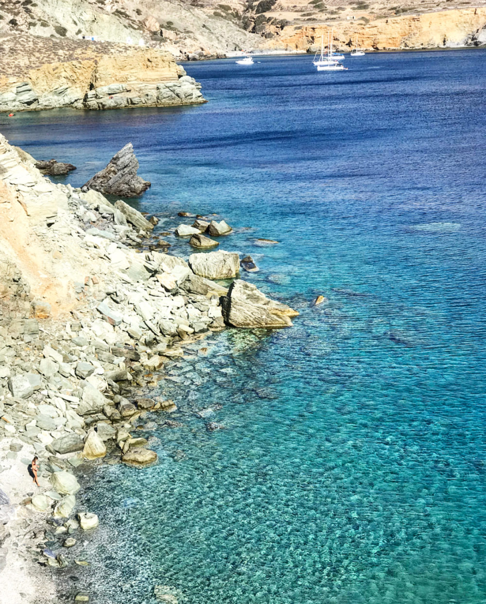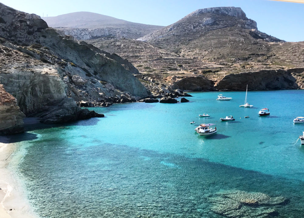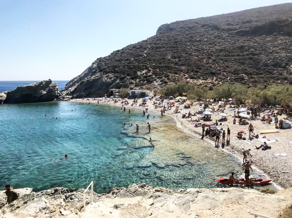 Αυτό το μικρό λιμανάκι με τα αραγμένα ψαροκαΐκα και τη συστάδα από μερικά λευκά κυβόσπιτα που εκτείνονται πίσω από τη μεγάλη παραλία του σε τίποτα δεν προιδεάζει για το τι θα συναντούσα… Κρύβει βέβαια κι αυτό τις εκπλήξεις του, όπως υπέροχους κολπίσκους για ήσυχες βουτιές, αλλά με τη Χώρα δεν συγκρίνεται!