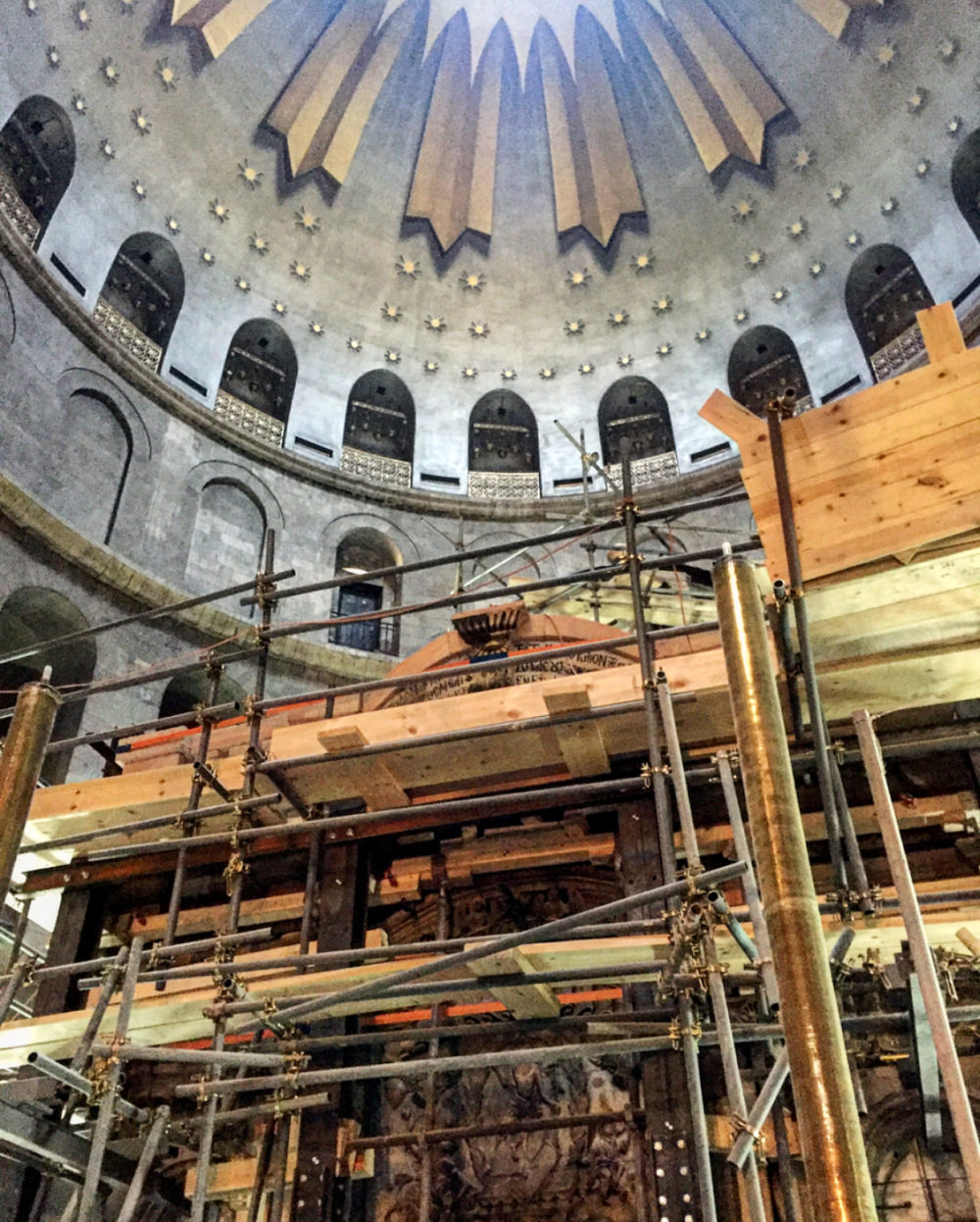Οι εργασίες αναστήλωσης -θα ολοκληρωνόταν πριν το Πάσχα- με σκοπό τη συντήρηση του Πανάγιου Τάφου και την προστασία του ιερού μνημείου από τη φθορά του χρόνου.