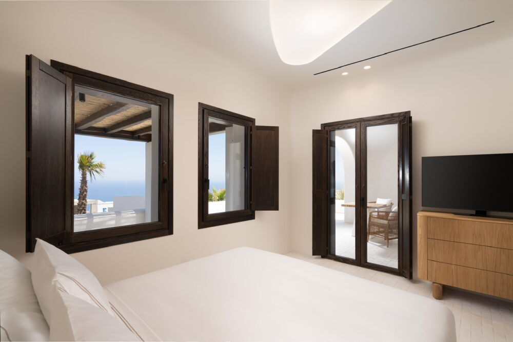 Το Katikies Cycladic House διαθέτει συνολικά πέντε υπνοδωμάτια, εκ των οποίων τέσσερα εξαιρετικά γενναιόδωρα σε τετραγωνικά δωμάτια με en-suite πολυτελή μπάνια και ένα master bedroom με τη δική του προσωπική plunge pool, μεταξύ των άλλων συναρπαστικών του facilities. Η μεγάλη εξωτερική θερμαινόμενη πισίνα αποτελεί το επιστέγασμα των φιλόξενων εξωτερικών living areas, που προσκαλούν τους επισκέπτες να ζήσουν μοναδικές στιγμές και εμπειρίες με φόντο μία από τις μακράν πιο υποβλητικές θέες στο διάσημο νησί του ηφαιστείου. Το walk-in cave cellar κλέβει τις εντυπώσεις και τις καρδιές ακόμη και όσων δεν ασχολούνται με το κρασί, ενώ γίνεται το επίκεντρο των πιο insta-worthy φωτογραφιών.