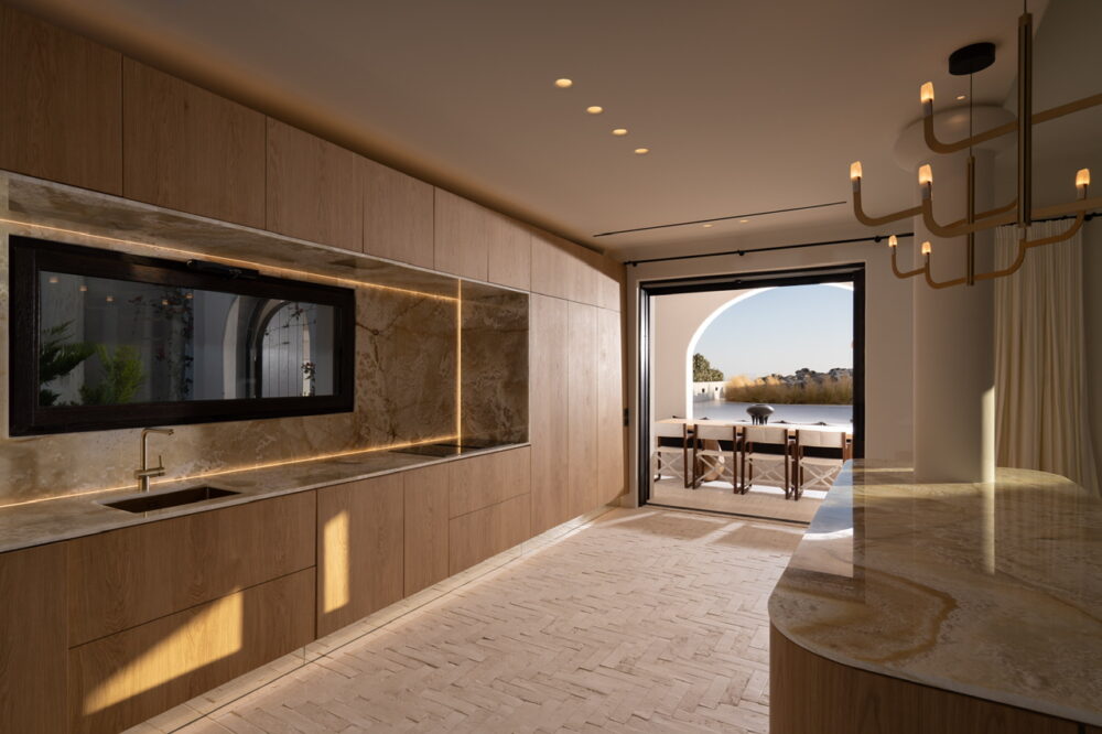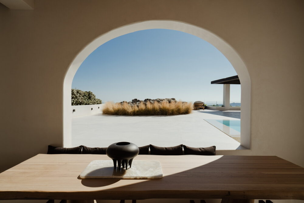 Η αρχιτεκτονική και το design έχουν παίξει το δικό τους κομβικό ρόλο στην κορυφαία private βίλα της Σαντορίνης, κατορθώνοντας να ενοποιήσουν εσωτερικούς και εξωτερικούς χώρους και να δημιουργήσουν τρία ξεχωριστά μεταξύ τους επίπεδα, διασφαλίζοντας τη μέγιστη άνεση αλλά και την πολυπόθητη ιδιωτικότητα των επισκεπτών που θα την επιλέξουν. Διακοσμητικά αντικείμενα τέχνης που παραπέμπουν στο μινωικό παρελθόν του νησιού, εκτενής χρήση φυσικών υλικών, όπως ξύλο και μάρμαρο, ρομπούστες επιφάνειες και μία προσεκτικά επιλεγμένη, λιτή, χρωματική παλέτα συνθέτουν μία άκρως εντυπωσιακή κατοικία που γεννά συναισθήματα και αναμνήσεις σε εκείνους που την απολαμβάνουν.