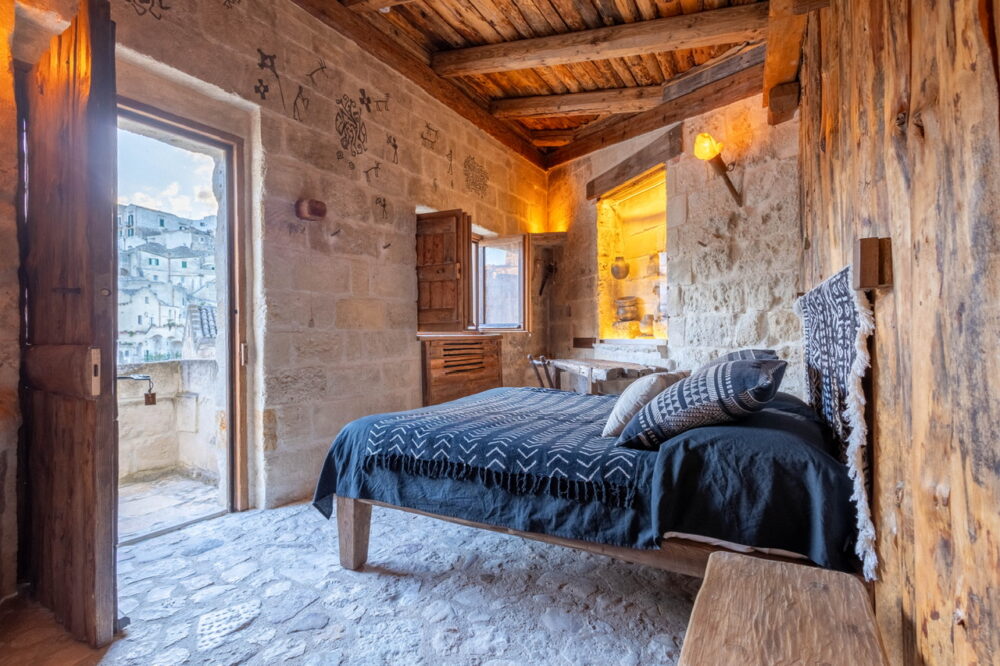 Η Ματέρα από μόνη της είναι ένα από τα πιο ιδιαίτερα μέρη στη Νότια Ιταλία! Ένα ταξίδι εδώ είναι από μόνο του μια εμπειρία στο χρόνο. Φανταστείτε λοιπόν αυτή η εμπειρία να ξεκινά από τον ίδιο τον χώρο διαμονής. Σε μια έκταση περίπου χιλίων τετραγωνικών μέτρων, μέσα στους βράχους των Sassi, έχουν ανακατασκευαστεί τρεις νεολιθικές κατοικίες, πέντε Ενωτρικές (στα σπίτια των Ενώτρων (Enotri), δηλαδή των αρχαίων πληθυσμών ελληνικής προέλευσης που εγκαταστάθηκαν στη νότια Ιταλία) και οκτώ κατοικίες της Μεγάλης Ελλάδας. Δεν πρόκειται για σκηνικά, αλλά για χώρους διαβίωσης: εδώ ο επισκέπτης δεν αναζητά το παρελθόν, αλλά το κατοικεί. Κάθε περιβάλλον του Moyseion Matera έχει δημιουργηθεί με τεχνικές πειραματικής αρχαιολογίας, ώστε να αποδίδει τον τρόπο ζωής διαφορετικών εποχών που προηγήθηκαν ή συνυπήρξαν με τον ελληνικό αποικισμό.