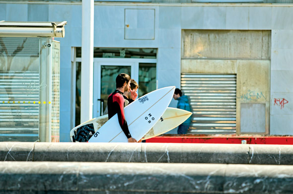 Οι Ισπανοί, και όχι μόνο, το θεωρούν έναν από τους tοp προορισμούς για surf παγκοσμίως! Ακόμα κι αν δεν είστε fan, είναι σίγουρο πως μια βόλτα μέχρι την παραλία La Zurriola (ούτε 10΄ με τα πόδια από τη La Concha και αφού διασχίσετε το ποτάμι Urumea), με τους χιλιάδες surfers να σχίζουν τα κύματα με τις σανίδες τους, αξίζει! Αν, πάλι, η έλξη είναι πιο δυνατή και πέρα από μια βόλτα καταλήξετε να κοιτάτε από την αμμουδιά με δέος και θαυμασμό αυτό το υπέροχο σπορ, τότε μη διστάσετε. Η Pukas Surfeskola, η πιο έμπειρη σχολή surf στην Ισπανία, είναι εκεί για να μυήσει ακόμα και τους αρχάριους στα μυστικά της ιστιοσανίδας. Οι καθηγητές είναι έμπειροι και θα προσαρμόσουν το μάθημα στα… μέτρα σας! Η εμπειρία τού να δαμάζεις το κύμα αξίζει τον κόπο και τις… πολλές βουτιές που θα φας μέχρι να το καταφέρεις! (1 ώρα κοστίζει €52 και η 2η €38). Μετά το μάθημα surf, η περιοχή Gros, και πιο συγκεκριμένα η οδός Zapaleta, αποτελεί meeting point, καθώς είναι γεμάτη προσεγμένα cafe-bars. Ξεχώρισα το La Guinda. Τip: Moναδική πρόταση πάνω στη παραλία για καφέ είναι το People.