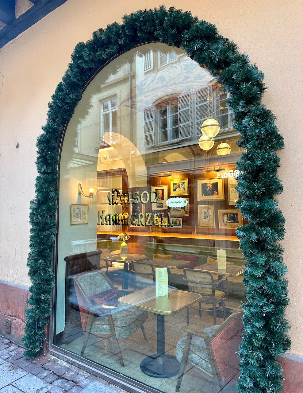 • Καλό είναι να έχετε κάνει κράτηση από πριν αν θέλετε κάποιο συγκεκριμένο εστιατόριο, καθώς τις μέρες των Χριστουγέννων η ζήτηση είναι αυξημένη και οι ουρές αποθαρρυντικές. Ένα από τα πιο τυπικά της πόλης είναι η σικ brasserie Maison Kammerzell που χρονολογείται από το 1427. Επίσης το Le Gruber σε ρουστίκ στυλ φημίζεται για τον εντυπωσιακό στολισμό του και την παραδοσιακή αλσατική κουζίνα. Δοκιμάστε το choucroute garnie (ξινολάχανο με αλλαντικά) και πατέ. Και τα δύο θα τα εντοπίσετε κοντά στην Place de la Cathédrale.