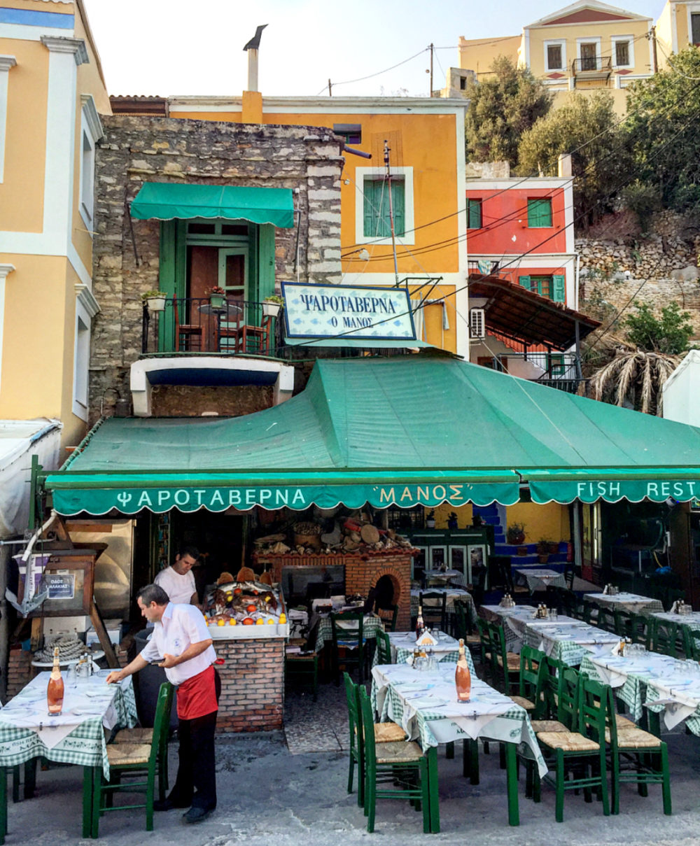 Από τα αγαπημένα μου εστιατόρια οι Muses, κρυμμένο λίγα μέτρα από την παραλία σε μια παλιά συμιακή κατοικία. Εδώ οι συνταγές παντρεύουν την παράδοση με μοντέρνες πινελιές (τηλ. 22460 71212)