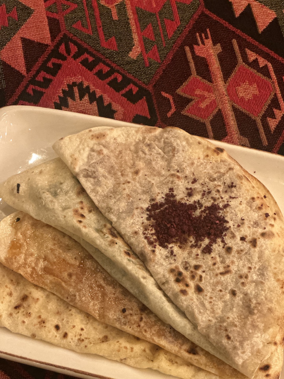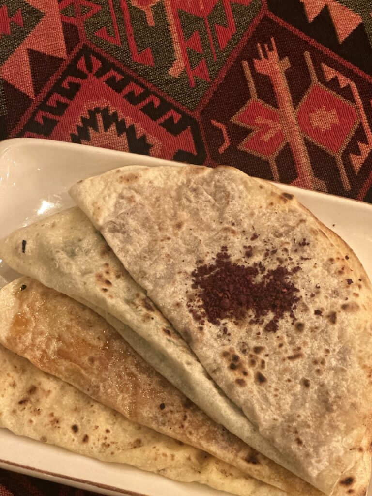 Qutab  Λεπτές πίτες γεμιστές με διάφορα υλικά όπως χόρτα, τυρί ή κιμά.