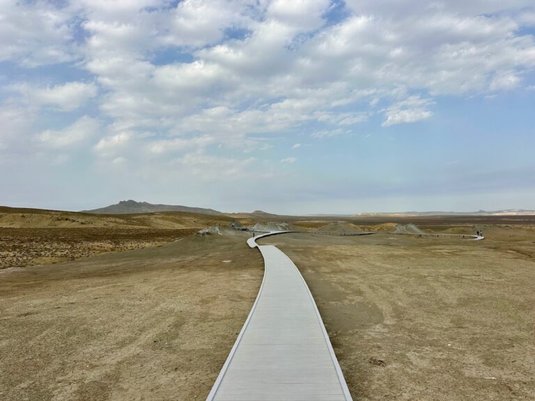 Από εκεί συνεχίστε για τα ηφαίστεια λάσπης, ένα σχεδόν σεληνιακό τοπίο που μοιάζει να έχει βγει από ταινία επιστημονικής φαντασίας. Η περιοχή φιλοξενεί τη μεγαλύτερη συγκέντρωση ηφαιστείων λάσπης στον κόσμο με δεκάδες μικρούς κρατήρες που “κοχλάζουν” και αναβλύζουν λάσπη και αέρια από τα έγκατα της γης! Ο ήχος από το… βράσιμο που κάνουν τα αέρια καθώς ανεβαίνουν στην επιφάνεια είναι πραγματικά εντυπωσιακός και δύσκολα περιγράφεται αν τον ζήσεις από κοντά! Δεν είχα ξαναδεί κάτι παρόμοιο στη ζωή μου! Στον χώρο υπάρχει ένα μοντέρνο μουσείο, καθώς και ένα εστιατόριο αν θέλετε να κάνετε μια στάση.(Εισιτήριο 15 ΑΖΝ-7,5€)